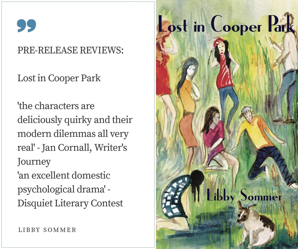 Pre-release reviews: ‘Lost in Cooper Park’ December 6, 2020 ~ Libby Sommer Counting down to release this month by Ginninderra Press of my new book, LOST IN COOPER PARK. The book achieved Notable Awards in Seizure’s Viva la Novella Book Competition and the highly acclaimed European Disquiet International Literary Contest. Much excitement. Share this: Click to share on X (Opens in new window) X Click to share on Facebook (Opens in new window) Facebook Like Loading... Related